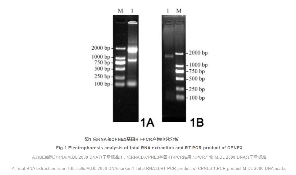 應(yīng)用任意引物設(shè)計(jì)將總RNA反轉(zhuǎn)錄為c DNA。以c DNA為模版,運(yùn)用生成的CPNE3遺傳基因非特異引物設(shè)計(jì)開展PCR擴(kuò)增。PCR物質(zhì)經(jīng)1%瓊脂糖電泳電泳原理,發(fā)生與預(yù)估相對(duì)分子質(zhì)量尺寸一致的雜帶(約1600 bp)。