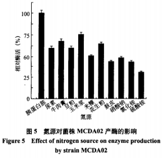 (1)發(fā)醇培養(yǎng)液氮源對(duì)菌種MCDA02產(chǎn)酶的危害