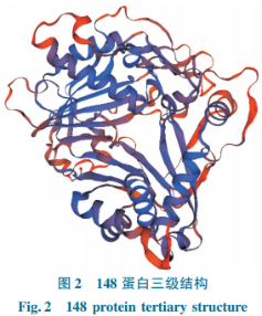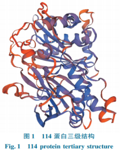 經SWISS-MODEL同宗模型發(fā)覺,114、148均融入酰谷丙轉氨酶實體模型,但其構像略不一樣(圖1,2)。