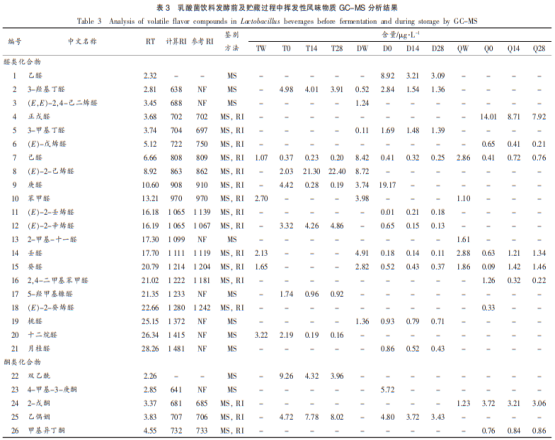 融合表3與圖1得知,除開提純頭產(chǎn)生的小量二甲基硅氧烷類殘渣,3種不一樣原料的乳酸飲料在發(fā)醇前、發(fā)醇完畢及貯存歷程中累計12組試品共監(jiān)測出107種揮發(fā)物化學物質(zhì),在其中包含21種代烴、17種大環(huán)內(nèi)酯、13種堿類、23種醛類、5種脂類、17種脂環(huán)及乙烷類、7種含碳氫化合物、4種其他化學物質(zhì)。發(fā)醇前的脫脂乳飲品、豆含乳飲料、乳清蛋白飲品中各自檢驗出31,29,27種揮發(fā)物化學物質(zhì),發(fā)醇完畢時揮發(fā)物有機物的總數(shù)各自為46,46,41種,儲藏完畢時揮發(fā)物有機物的數(shù)目為43,45,39種;奶制品在進行發(fā)酵全過程中,乳酸菌飲料以及形成的抗氧化物根據(jù)吸收代謝糖類與碳水化合物、蛋白等一系列細胞生物學全過程產(chǎn)生揮發(fā)物副產(chǎn)品,在其中在糖酵解途徑中,乳酸菌飲料將葡萄糖水轉(zhuǎn)換為丙酮酸,從而根據(jù)檸檬酸鈉新陳代謝等多種多樣新陳代謝路徑造成代烴、大環(huán)內(nèi)酯、堿類和醛類化學物質(zhì),在蛋白質(zhì)水解方式中,其根據(jù)胰蛋白酶溶解蛋白產(chǎn)生肽類和碳水化合物等多種多樣類化合物,在其中一部分碳水化合物等小分子水化學物質(zhì)進一步產(chǎn)生揮發(fā)物芳香化合物,而這一系列揮發(fā)物副產(chǎn)品的產(chǎn)生對發(fā)醇奶制品的滋味道和口味具有關鍵性的功效。