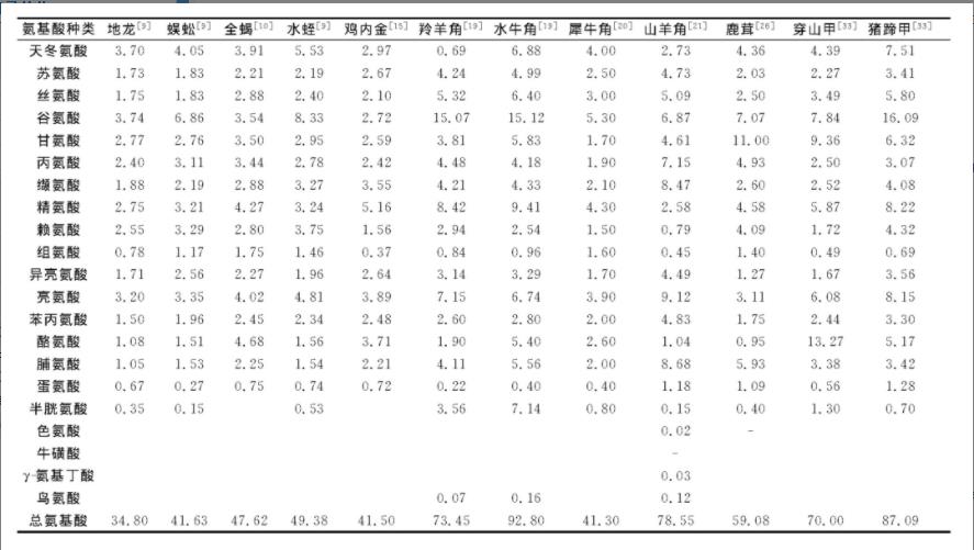 小動物藥中包含的氨基酸種類相似性較高,但成分有一定的區(qū)別,特有性不高,故小編覺得小動物藥中的動畫特效化學(xué)物質(zhì)很有可能并不是碳水化合物,只是其所含的活性多肽或蛋白,如鹿茸片活性多肽、白僵菌素等。殊不知,現(xiàn)階段有關(guān)該類有機物的分析較少,且有關(guān)藥理學(xué)體制科學(xué)研究偏淺,大多數(shù)是關(guān)于動物藥液提液或醇提液的科學(xué)研究。因而,對小動物藥中活性多肽或蛋白的深入分析能夠變成以后的主要方位。文中對動物的分類意味著藥品的藥用價值開展了綜合分析,匯總了近些年一部分小動物藥中氨基酸等成份很有可能的藥用價值,以求為小動物藥的臨床試驗和開發(fā)利用給予參照。