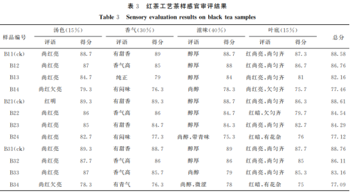 綠茶加工工藝荼葉的感觀評審結(jié)果由表3得知,福鼎大白茶、白葉1號和黃金芽3個種類荼葉的對比試品綜合性質(zhì)量評分最大,整體呈現(xiàn)為茶湯顏色光亮,香味帶香甜,味道醇正,葉底的顏色調(diào)勻度不錯,厭氧發(fā)酵2h和4h的試品感觀質(zhì)量整體主要表現(xiàn)平穩(wěn)。在厭氧發(fā)酵時間達(dá)8h時,3種荼葉綜合性質(zhì)量評分較低,關(guān)鍵表現(xiàn)在香味、味道跟葉底3個層面,荼葉香味越來越低悶,味道醇正度降低且變澀,葉底紅暗且有草雜。綠茶加工工藝荼葉葉底顏色非常容易發(fā)暗,剖析其根本原因是厭氧發(fā)酵時間增加造成 PPO酶促反應(yīng)核心呈脫氨態(tài)方式,且茶氨酸成分降低,危害一切正常酶促氧化還原反應(yīng)而造成異常顏色。