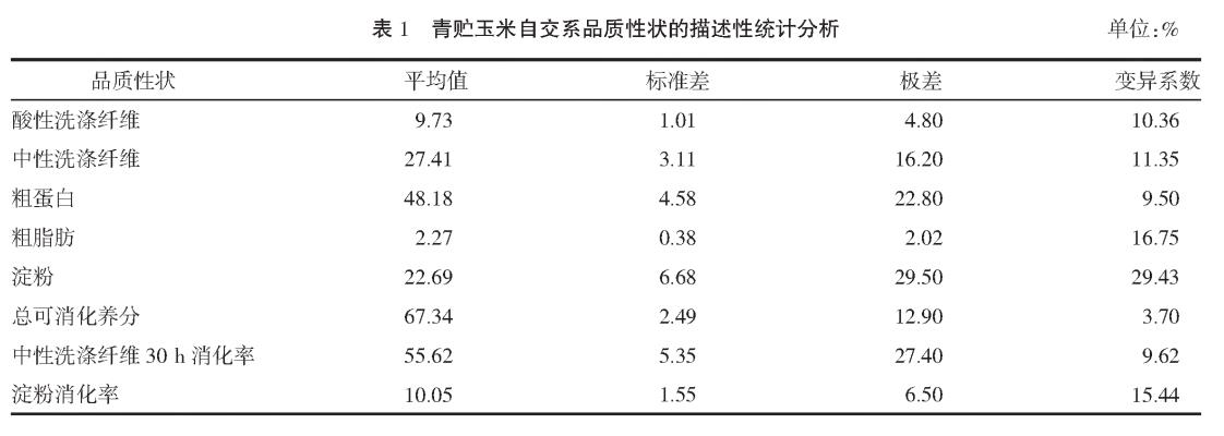 2.1 青儲玉米自交系質(zhì)量特性敘述與有關(guān)剖析