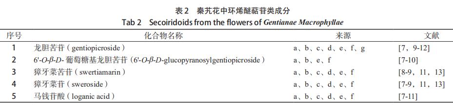 秦艽花與其根一樣含有多種環(huán)烯醚萜苷類成分,除此之外,還含有黃酮類、三萜類等化學(xué)成分。