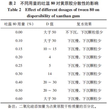 噴撒不一樣使用量吐溫80對卡拉膠分散性危害的檢驗結(jié)果見表2。