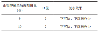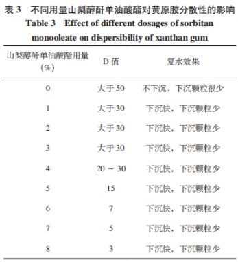 噴撒不一樣使用量山梨糖醇酐單脂肪酸酯對卡拉膠分散性危害的檢驗結(jié)果見表3。